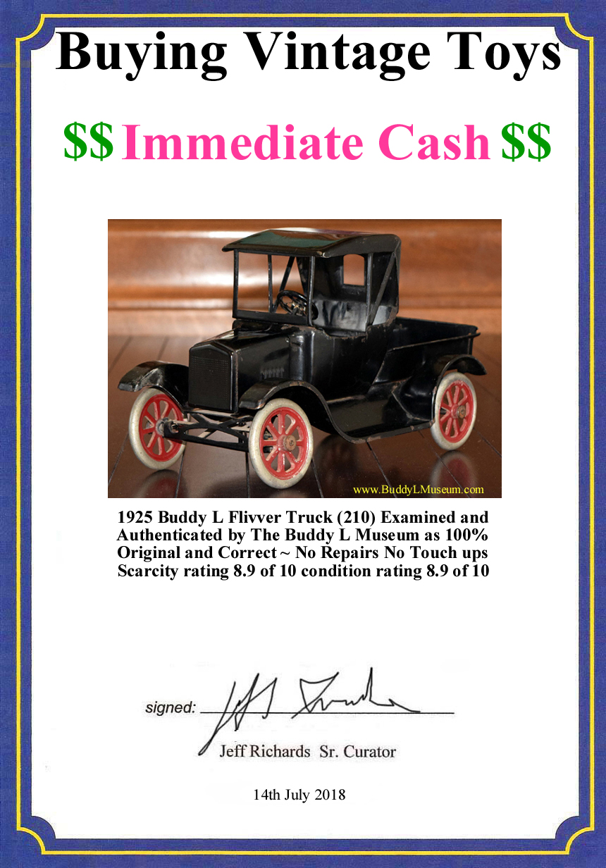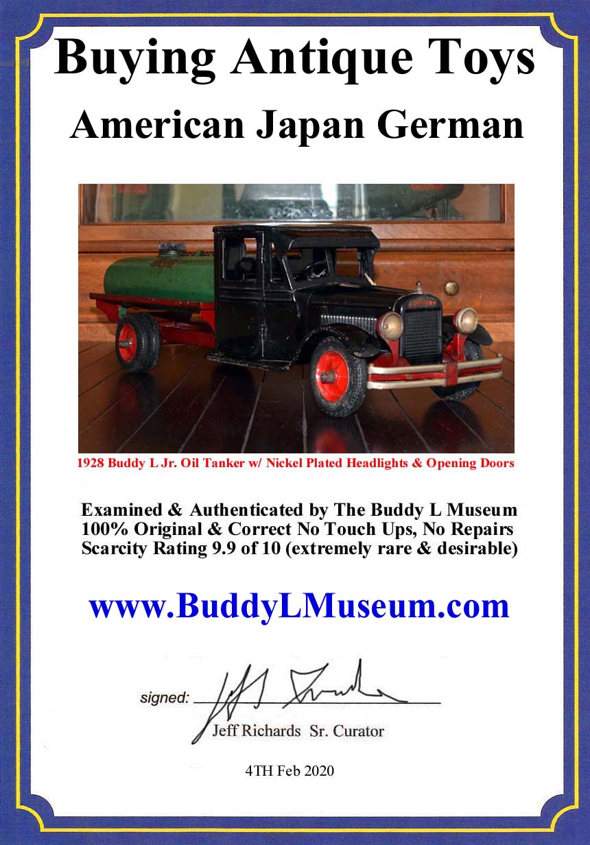 manufactured before 1949 Buddy L Museum is the world's largest buyer of old toy trucks and vintage toy trains Free Buddy L antique toy