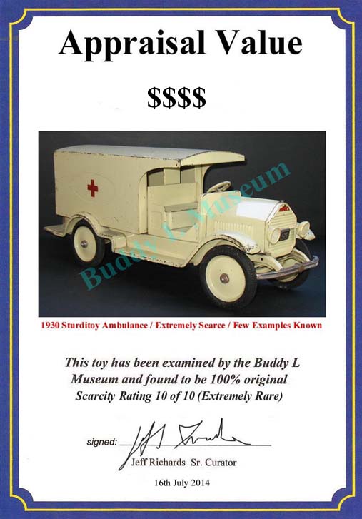 Partial list of pressed steel toys the Buddy L Museum would like to purchase: Sturditoy Ambulance